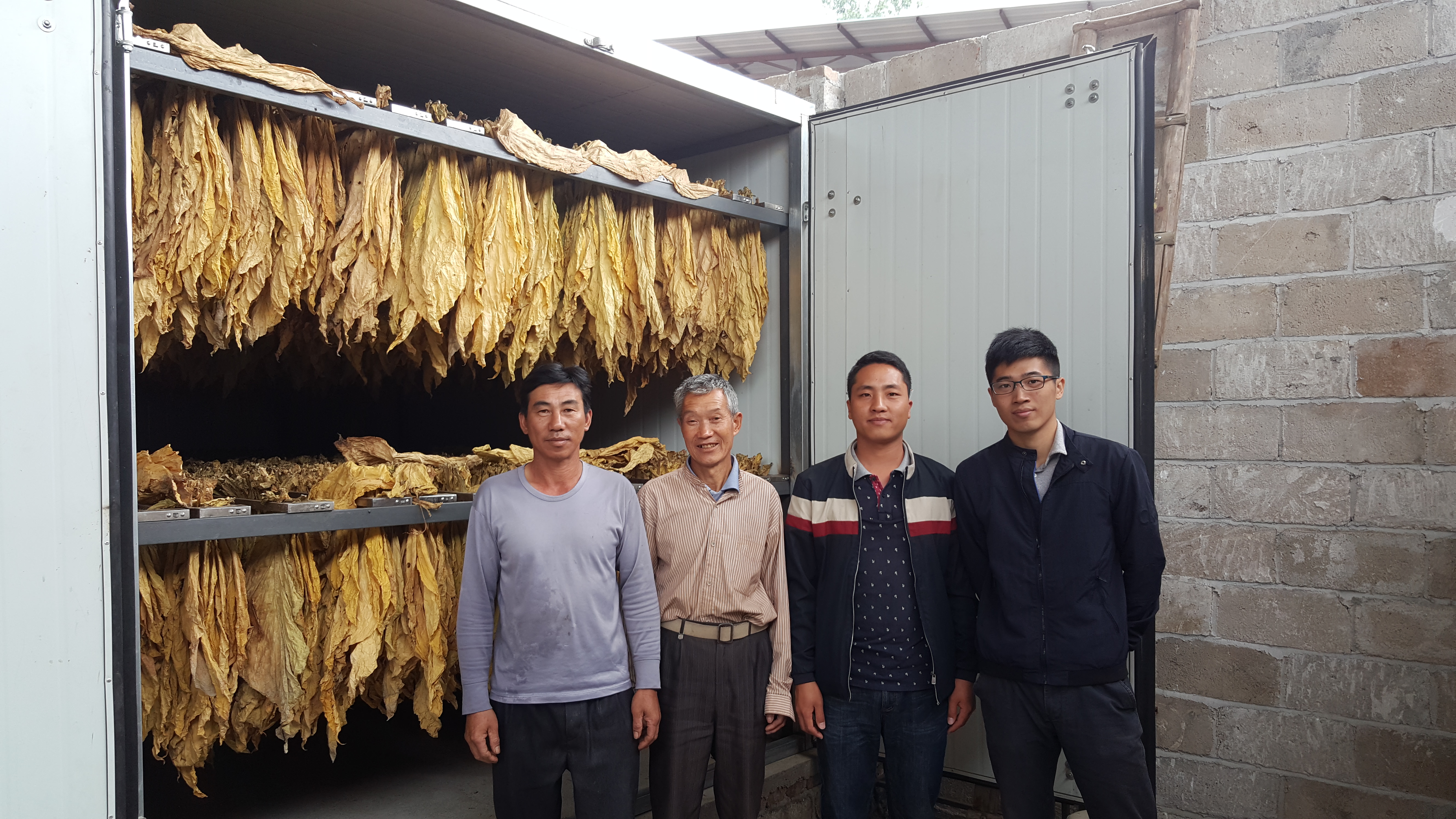 以竿距20~25厘米为宜,底棚挂置成熟度稍低一点的烟叶。自然环境湿度较大,水分较高的烟叶以及下部烟叶,装烟密度适当减稀;天气比较干旱,烟叶水分含量较低,或者是上部烟叶,装烟密度可适当加密。